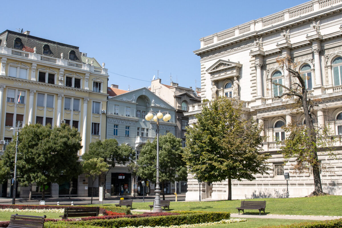 From Republic Square, we continued our Belgrade sightseeing adventure in front of the Hotel Moskva, also catty corner to Hotel Balkans, two of the fanciest hotels in the city where diplomats, politicians, and famous people frequented over the years. Dušan, for whatever reason, made an elaborate point several times that the only foreign dignitary who didn’t stay at the Hotel Moskva was Queen Elizabeth. Apparently there was so much peeping happening by curious locals looking through the glass from the outside that the hotel built a patio sitting area where one could go for food and drink, and more easily catch a glance of a famous person within. In modern times, it felt like less of a big deal.