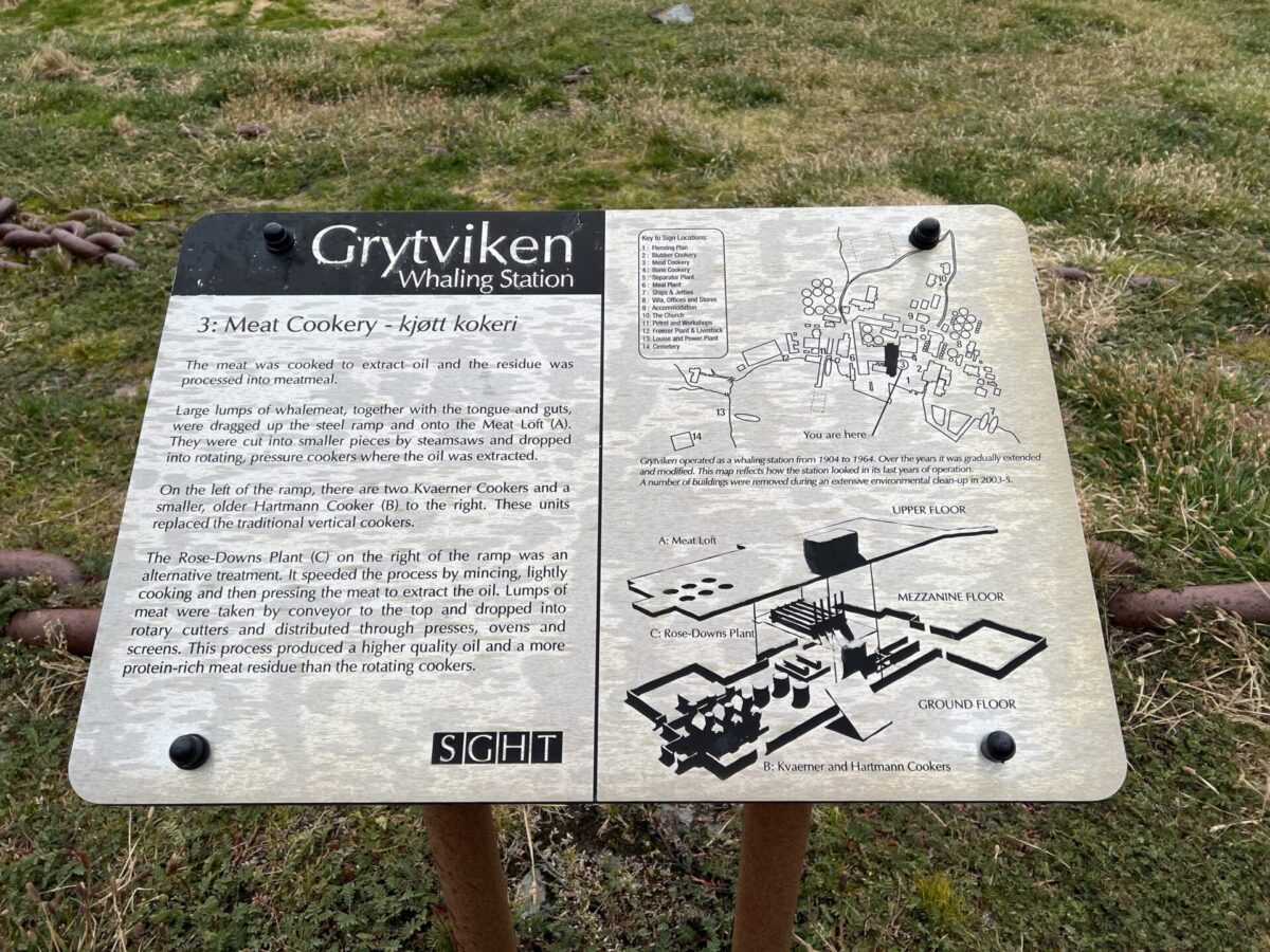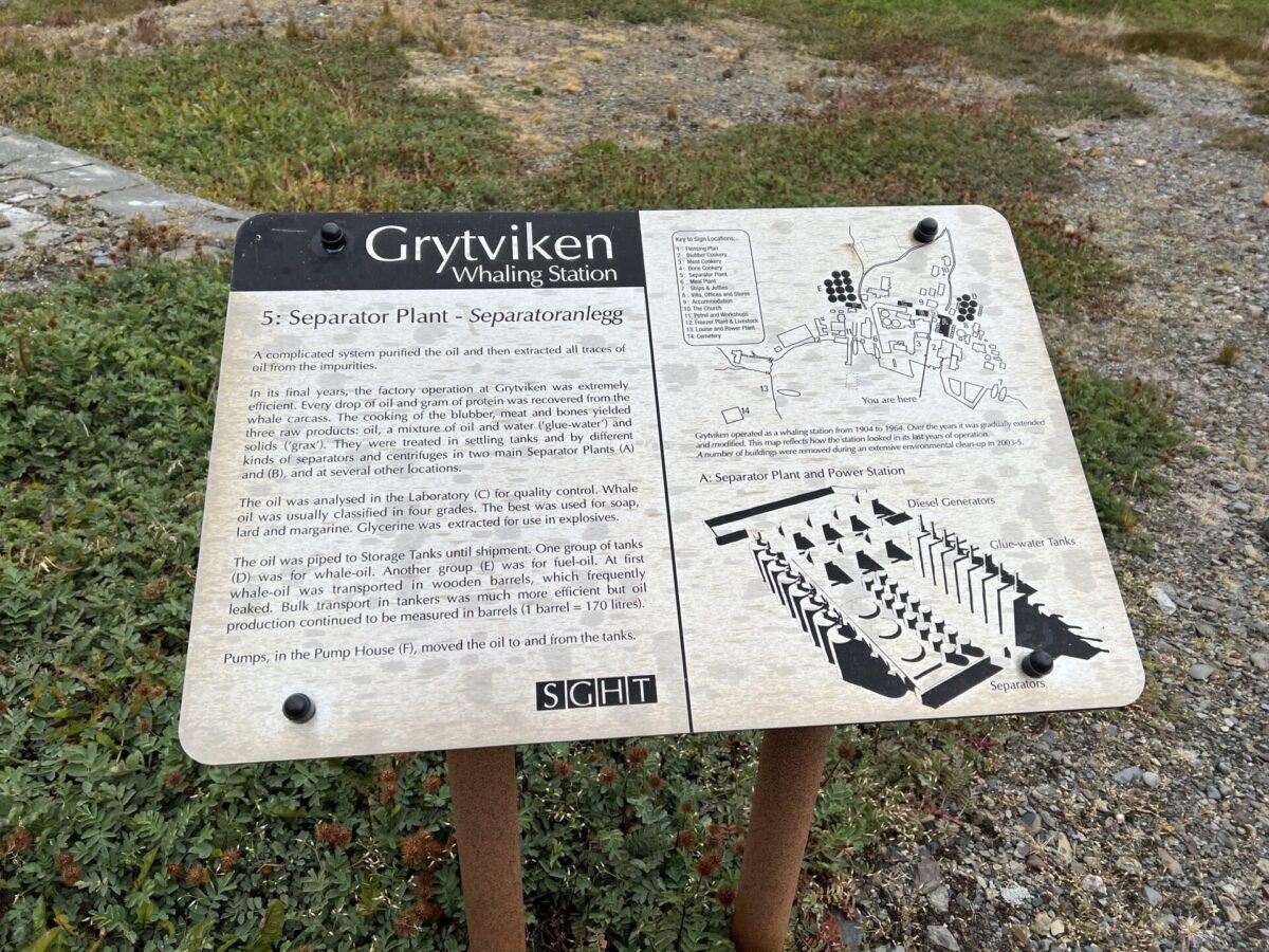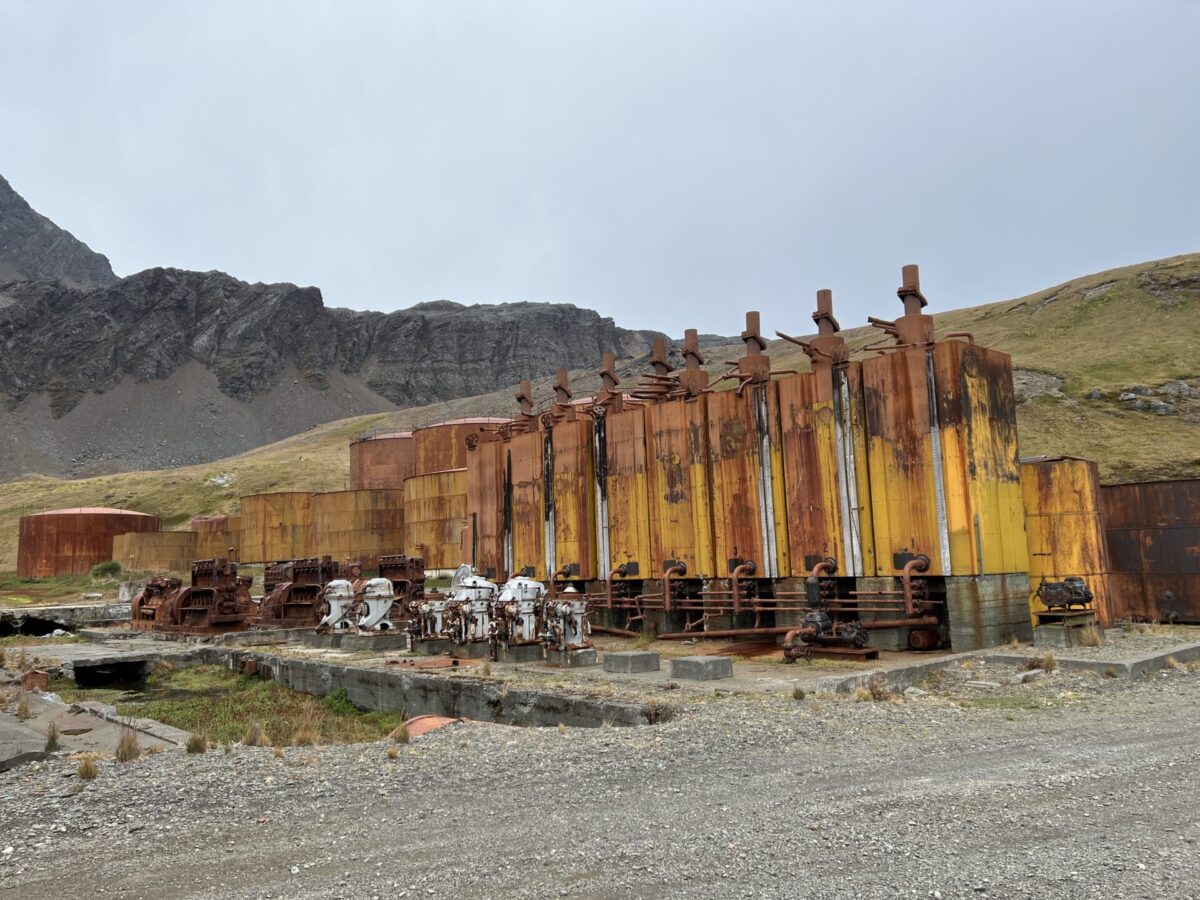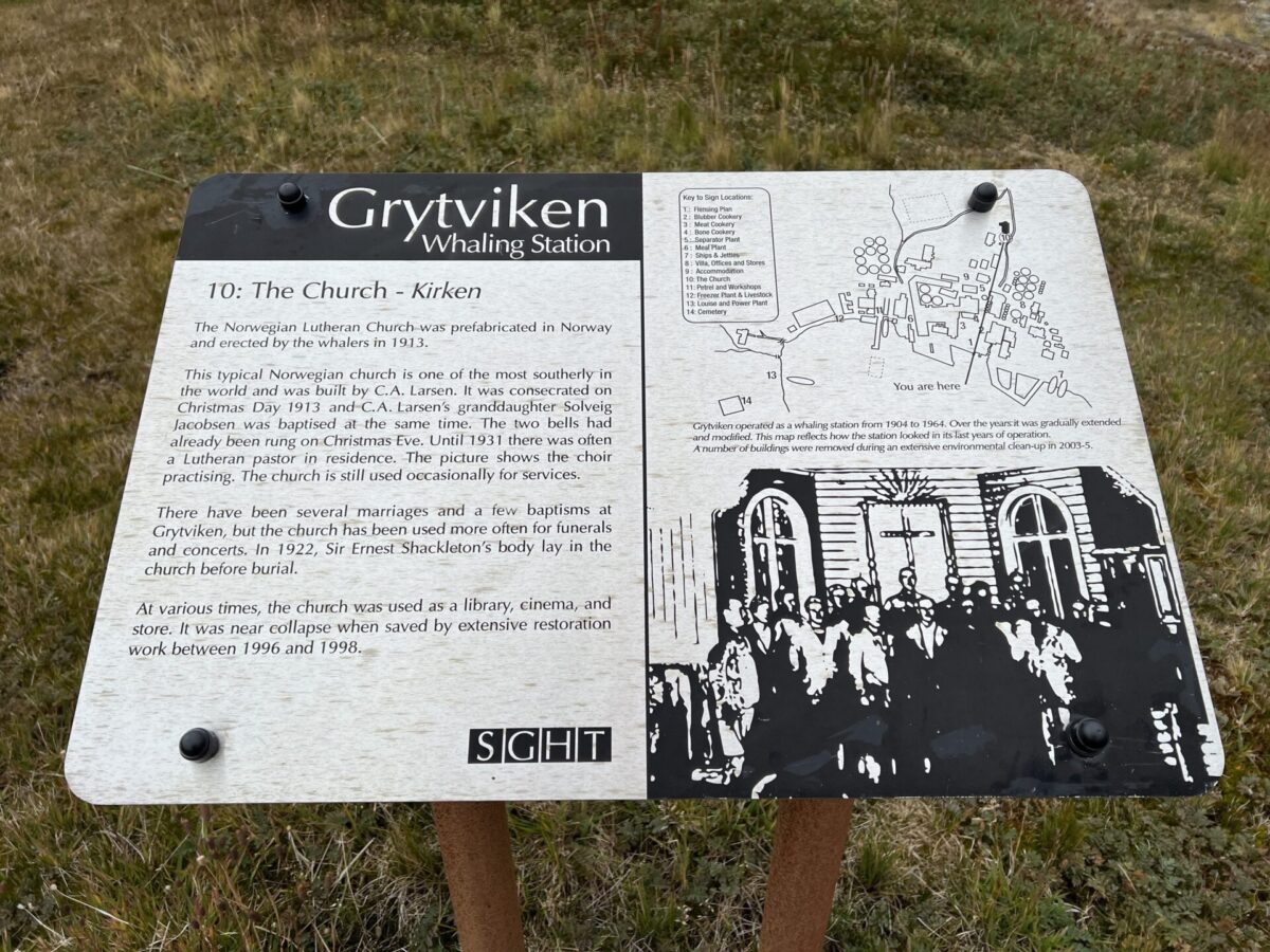 We continued to walk towards the main mass of Grytviken, with baby pups continuing to challenge us along the way. We let them know they “were doing a good job” (an inside joke), and were very scary and brave, even as the cowered away. We explored the remains of the old Grytviken whaling station which included a hydroelectric plant, an old freezer plant (no longer functional), workshop (still operational), barracks, church, separator plant (for purifying the whale oil), along with a meat and blubber cookery. It was somewhat encouraging to hear that they had used all parts of the whale during the operations here, which had there heyday in the 1920s.