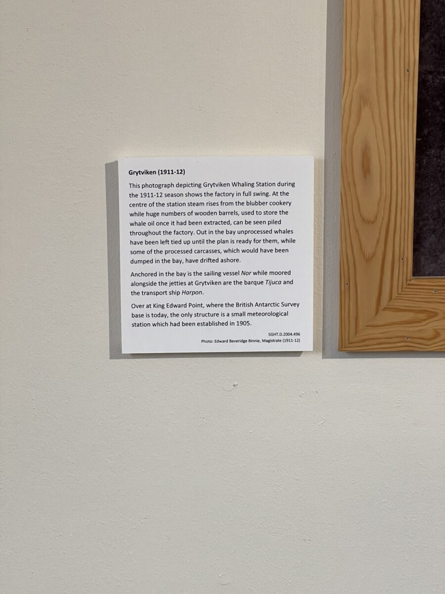 We went through the post office with its goods for sale that didn’t interest us much, but with some great reproductions of Frank Hurley’s pictures from the Endurance Expedition, and a nice video on the whaling station’s history.
