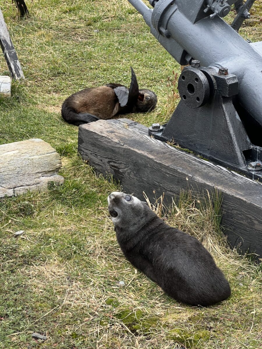 There was one more museum that we walked through with some additional great history of the area and prominent people, and we liked their gift shop a bit more, and ended up purchasing an Endurance mug. We walked out, enjoying the hulls of two more rusted ships with fur seals all about (nature reclaiming its space over human industry). I could have watched them playing forever, but we made our way back to the tender boat and returned to the ship.
